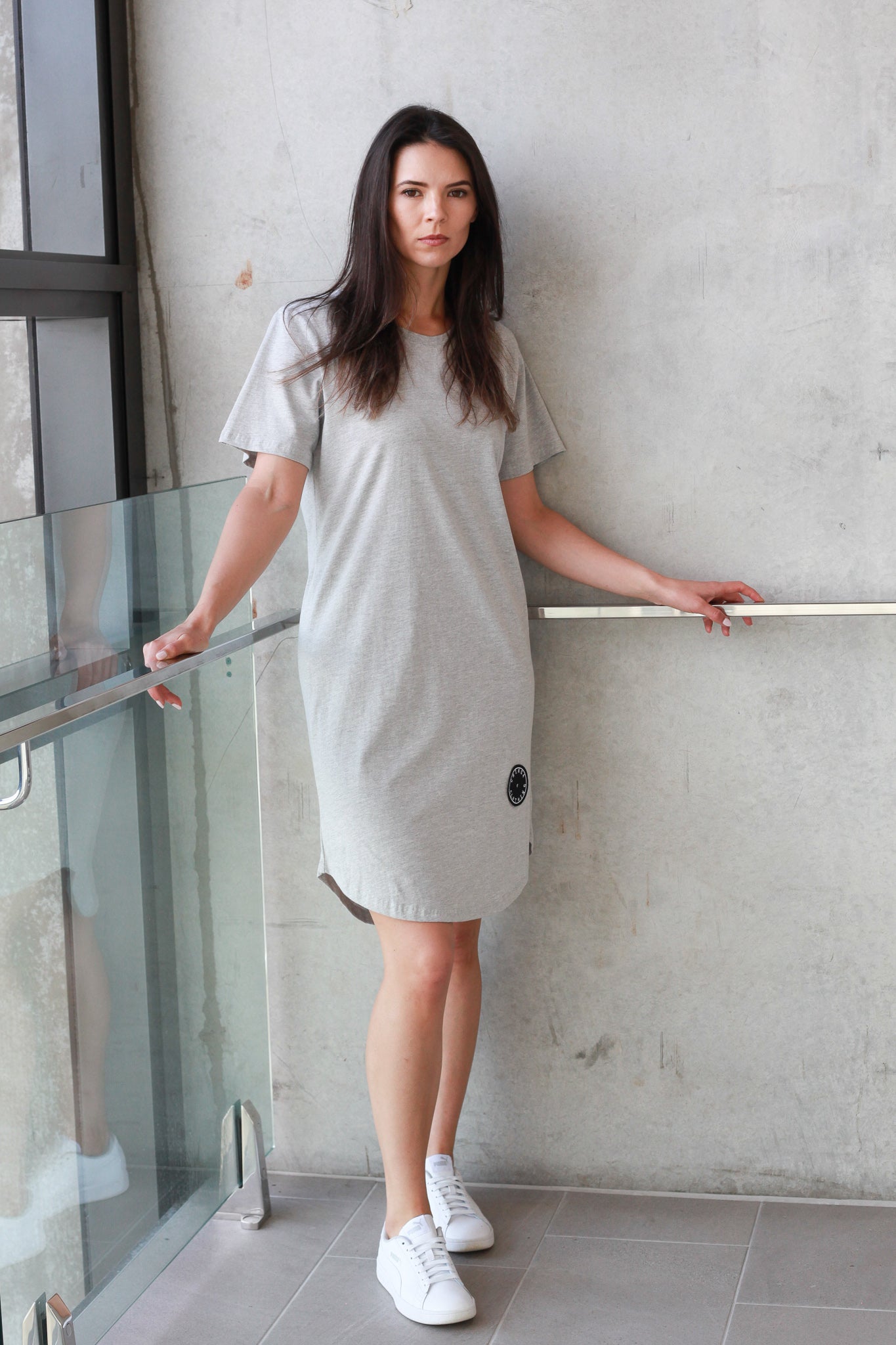 Pair with your favourite sneakers or slides for an effortlessly cool summer’s day look.Details:- Tee dress style shape- Rounded neckline- Curved hemline that goes up at the side- Black Chinga patch on bottom corner- Material: Cotton/Spandex