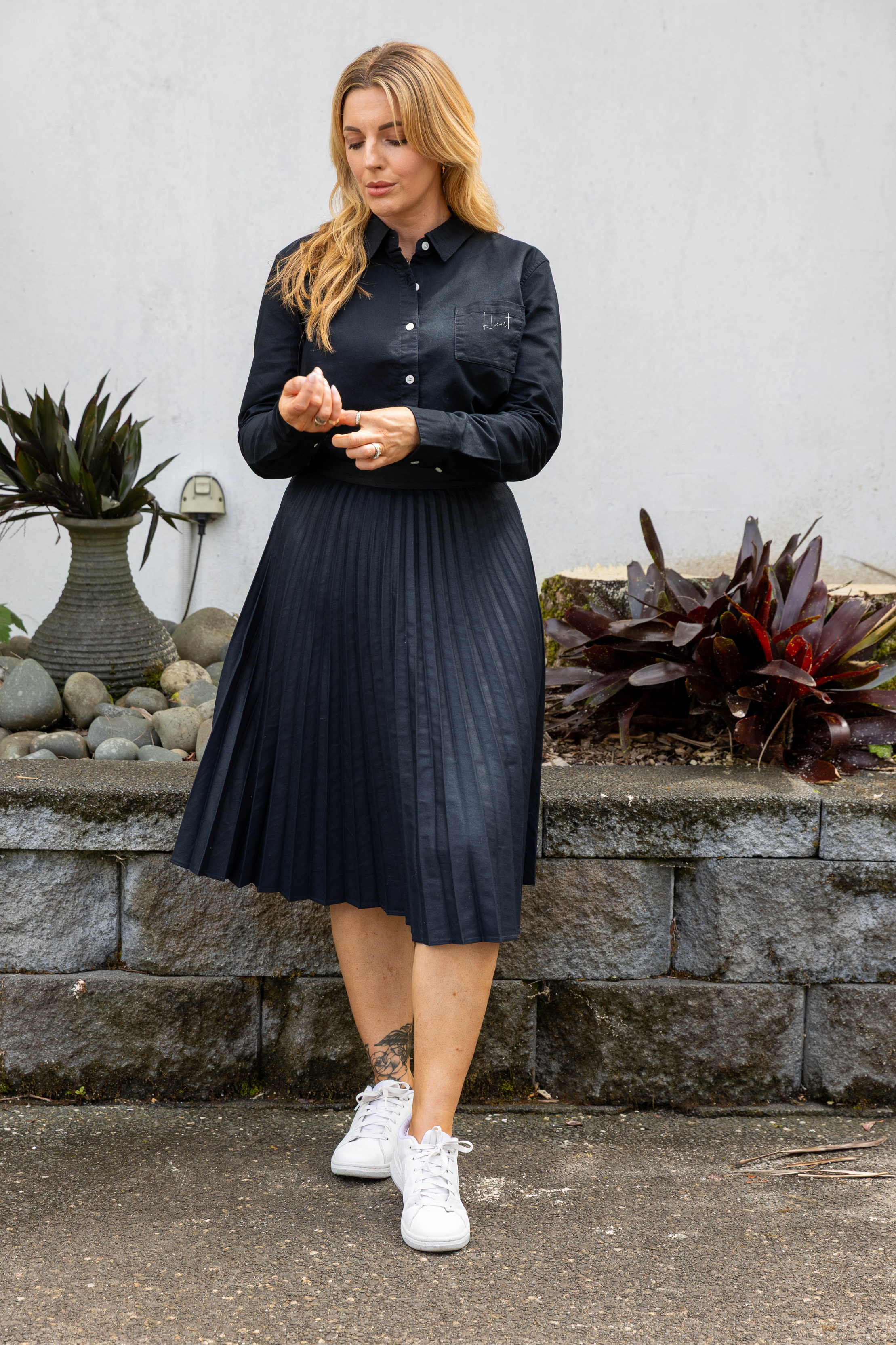 Designed for women who do it all — from school drop-offs to client meetings — this shirt offers a polished look without sacrificing ease. Made from 100% woven cotton, it’s lightweight yet structured, perfect for year-round wear.